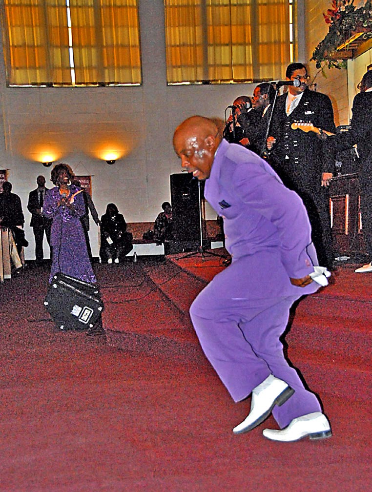 INITIALLY I thought that the man in the blue suit with white shoes, was a gospel concert groupee. Not true. At 65, Nelton Shorter has been “clean” for 20 years. He credits finding Jesus as the solution to past troubles. He attends gospel concerts to dance and “Praise the Lord”. He never stops moving.