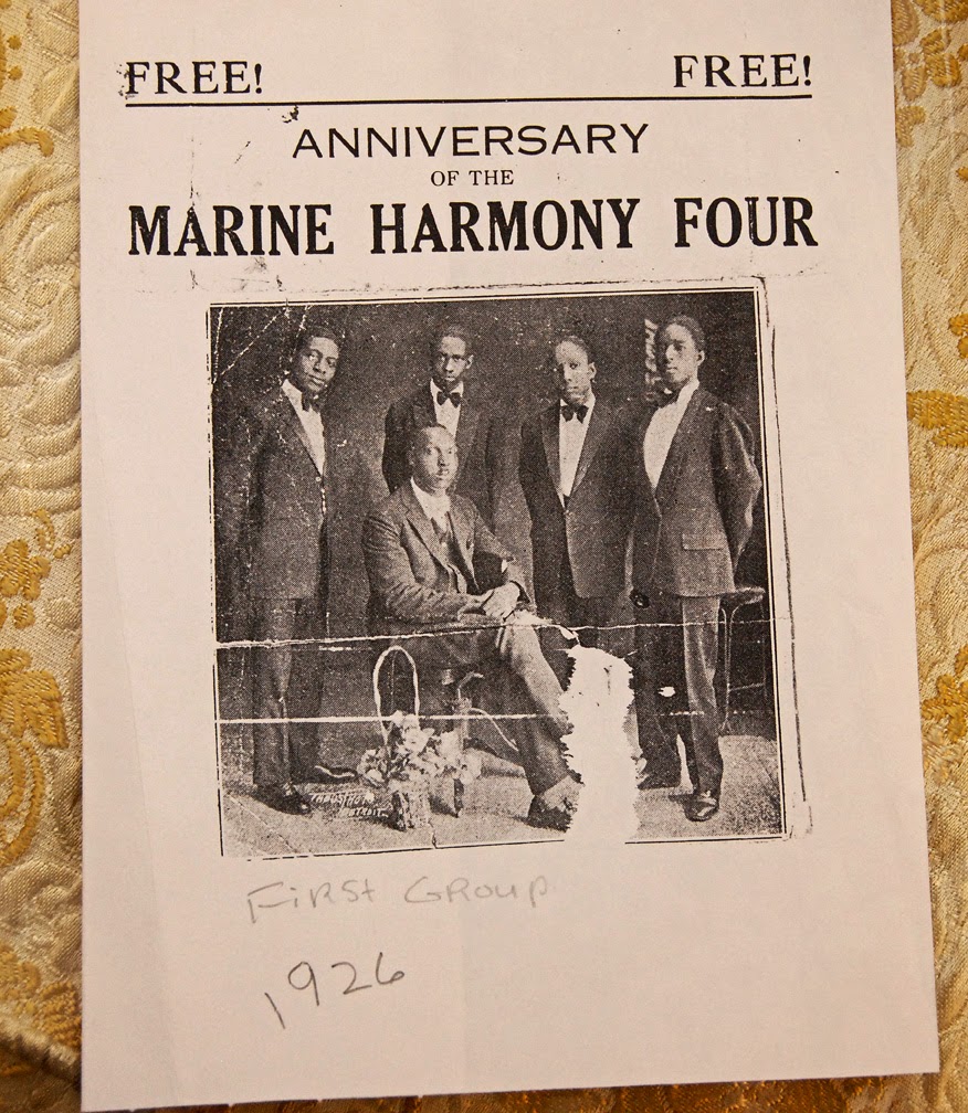 Kelly has maintained a print archive of his musical history leading a Capella gospel quartets, beginning with the Marine Harmony Four in 1926. “we used to sing on the corner till midnight, or until the cops told us boys to go home”.