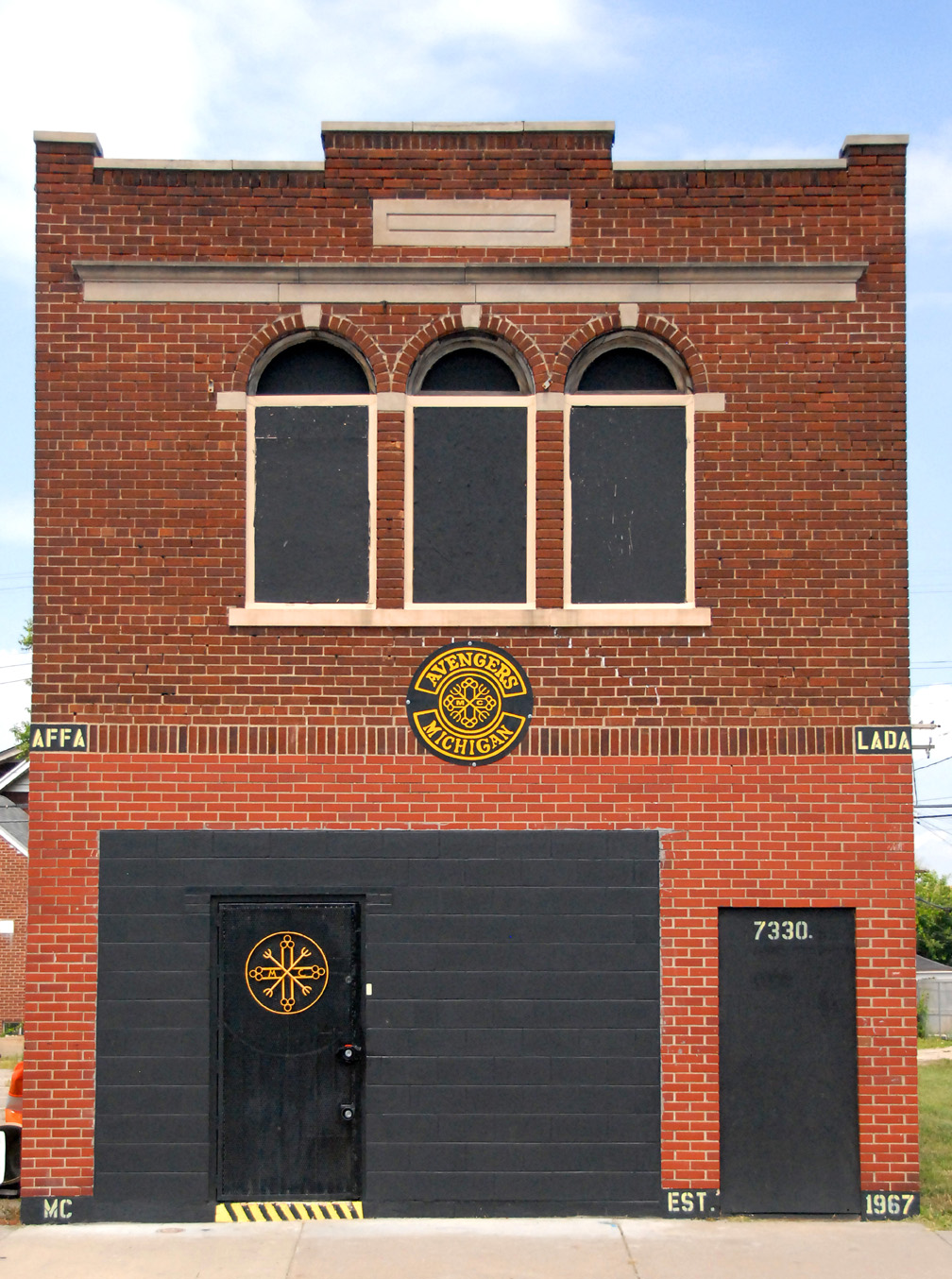 The Avengers, established 1967, have a neat storefront building on W. Warren with a well-crafted metal fabricated logo mounted on the door.